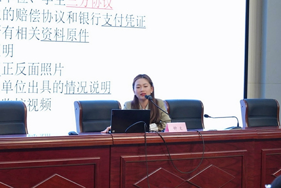 为全方位保障实习生合法权益,学校统一为实习生购置实习生责任险,并特邀太平洋财险南湖支公司总经理助理钟文现场讲解保险保障范围、理赔流程等关键内容,为学生的实习之路增添坚实后盾。