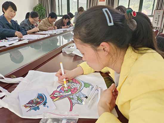 4月20日,舟山市普陀区山西村文化礼堂联合六横镇成人文化技术学校组织村民开展渔民画主题创作活动,特邀渔民画非遗传承人郑老师现场授课指导,以帆布袋为载体,推动非遗技艺与日常生活深度融合。