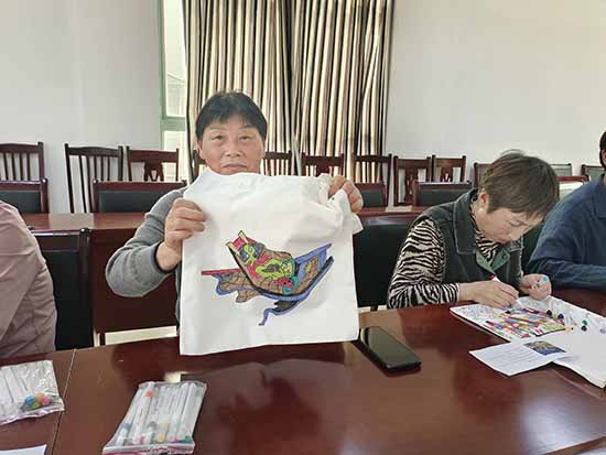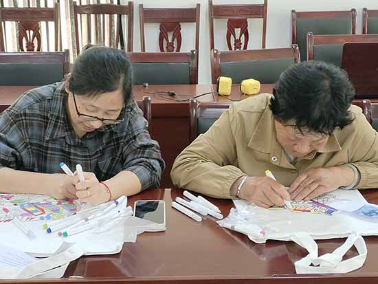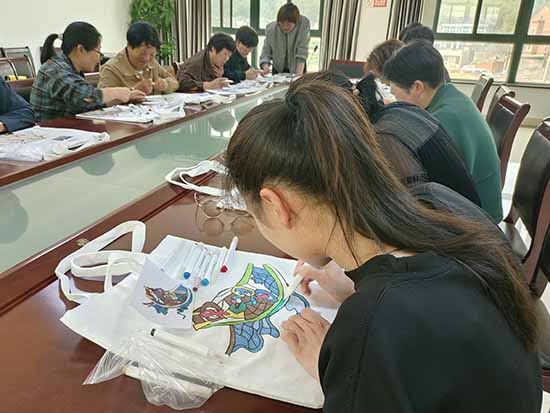 创作现场气氛融洽,技艺娴熟的学员率先完成构思精巧之作,进度稍缓者则相互协作、互促共进,于调色勾勒间交流心得,于欢声笑语中体悟非遗魅力。此次创作的帆布袋兼具实用功能与艺术价值,既承续渔民画传统韵味,又契合日常应用场景,使非遗文化以更为贴近生活的方式实现活态传承。