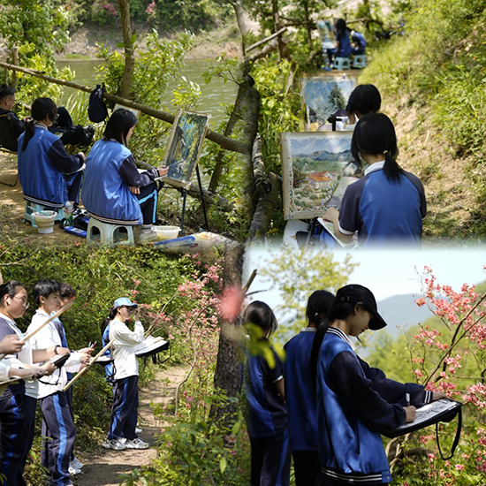 4月20日,绍兴市上虞区职业教育中心组织24工美大专1班全体学生,走进下管镇芦山映山红基地,开展“丹青绘春色——青春学子艺术赋能乡村振兴”现场绘画实践活动。