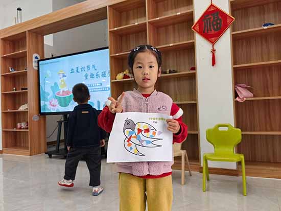 活动中,授课老师用通俗易懂的语言,细致讲解立夏节气由来、时令特点及传统民俗,带领幼儿初识传统节气文化。手工环节里,孩子们在家长协助下,动手撕贴彩纸、装饰小燕子手工作品,既锻炼了手部精细动作与实践能力,也在创作中感受初夏美好。