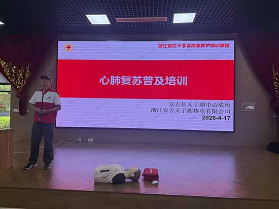 为进一步普及应急救护知识,提升企业员工突发事件应急处置和自救互救能力,筑牢企业安全生产防线,4月17日,天子湖成校走进天子湖热电设备有限公司,开展浙江省红十字会标准化应急救护心肺复苏专项培训,由安吉县红十字会专业讲师丁柏伟老师现场授课,企业一线员工、安全管理人员参与本次培训。